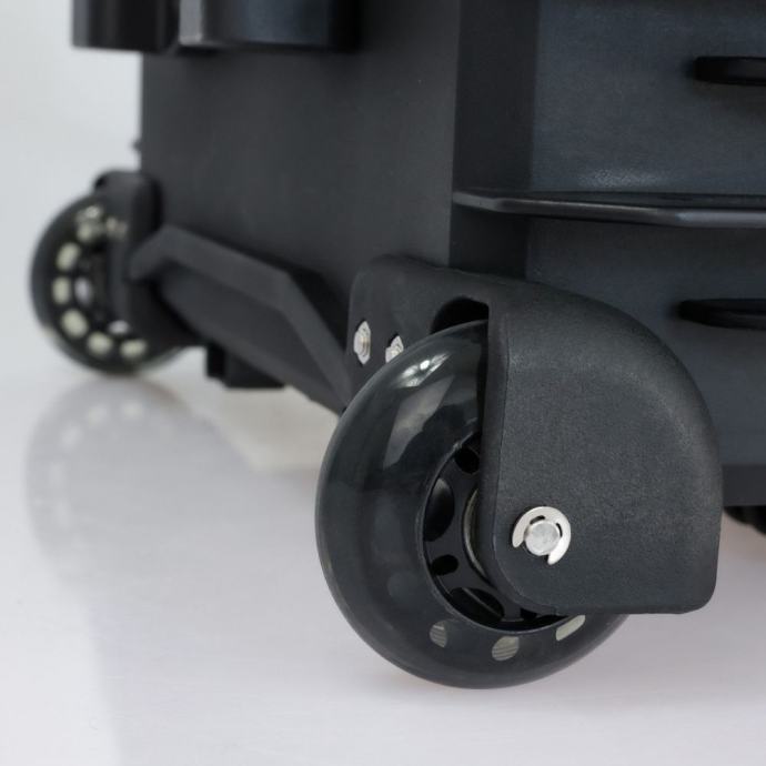 Kofer je opremljen teleskopskom ručkom i čvrstim kotačima za jednostavan transport. Prijenos na gradilištu ili tijekom mobilnih radova nikada nije bio lakši.