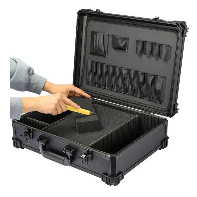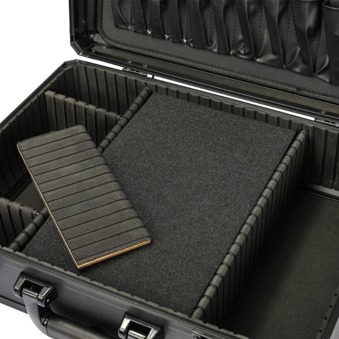 Ovaj kofer dolazi s 17 džepova koji su savršeni za pohranu manjih alata poput odvijača, čekića i sličnog. S 5 pregrada lako možete prilagoditi prostor za razne vrste alata, čime osiguravate bolju organizaciju i brži pristup alatima. Kofer također sadrži perforiranu pjenu visine 40 mm i savijenu pjenu visine 30 mm koja omogućava preciznu prilagodbu alata i zaštitu osjetljivijih predmeta.