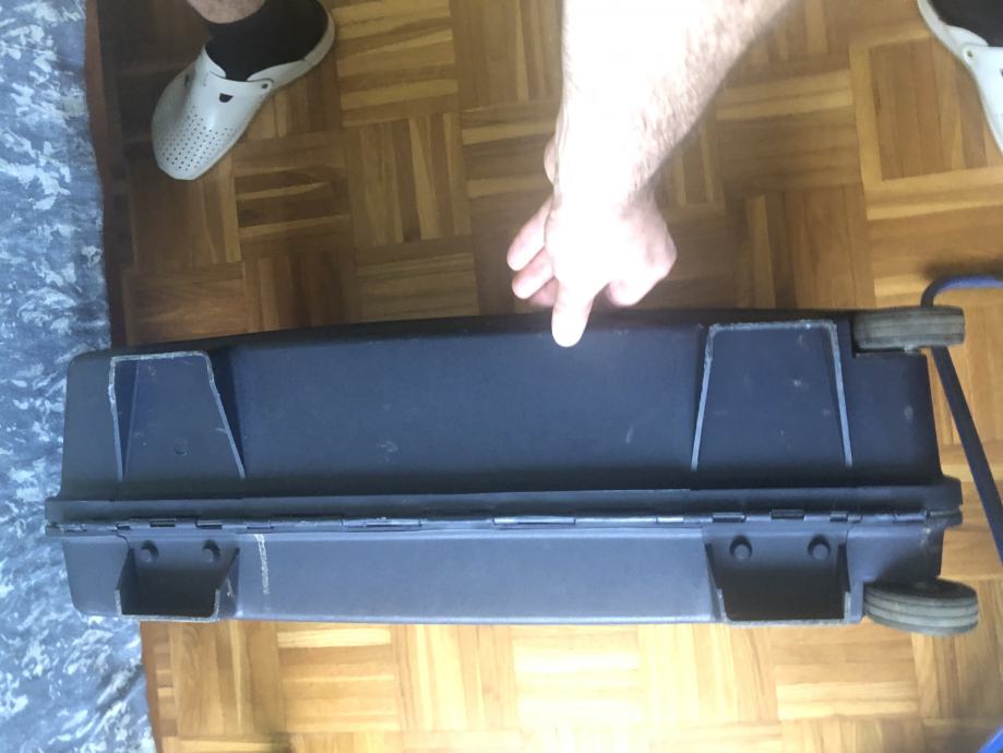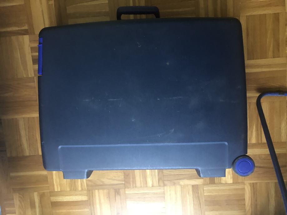 Tvrda plastika, s ručkom, na kotačima. Praktičan i očuvan. 63x45.5x22 cm.