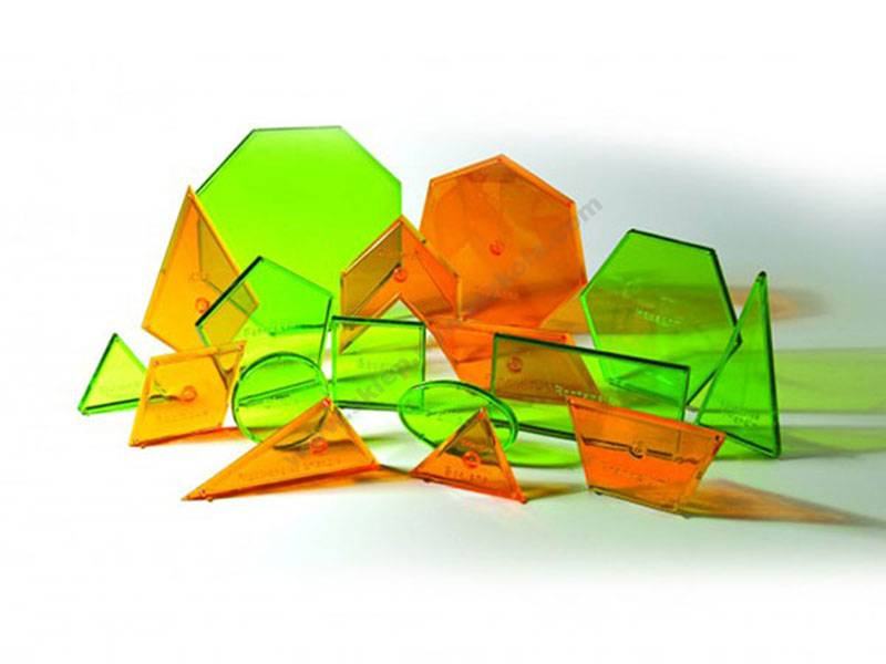 Komplet plašteva sadrži 17 prozirnih geometrijskih oblika: osmerokut, šesterokut, peterokut, kvadrat, jenadkostranični trokut, pravokutnik, krug, elipsa, paralelogram, sedmerokut, strelice prema dolje, romb, raznostranični trokut, trapez, pravi trokut i jednakostraničan trokut. Oblici imaju stranice pod kutem za 2D traganje (uparivanje 3D oblika) ili izradu mreža za crtanje 3D modela. Pojedini oblik je imenovan, i gdje god je moguće, imaju zajedničke stranice od 5 cm duljine.