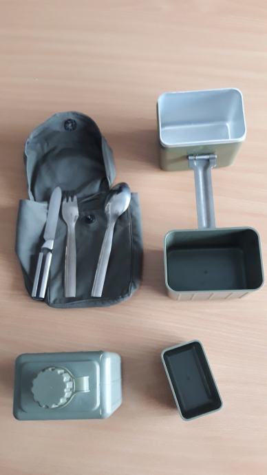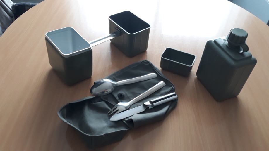 Prodajem rabljeni u dobrom stanju komplet , neoštećeno , čuturica , posuđe i pribor za jelo sa torbicom . U prilogu fotografije. Zagreb , Gornja Dubrava , Poljanice