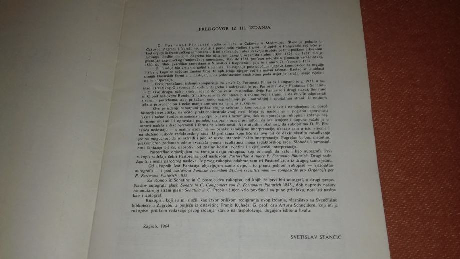 Kompozicije za klavir, O. Fortunat Pintarić - 1978. godina, u odličnom stanju.