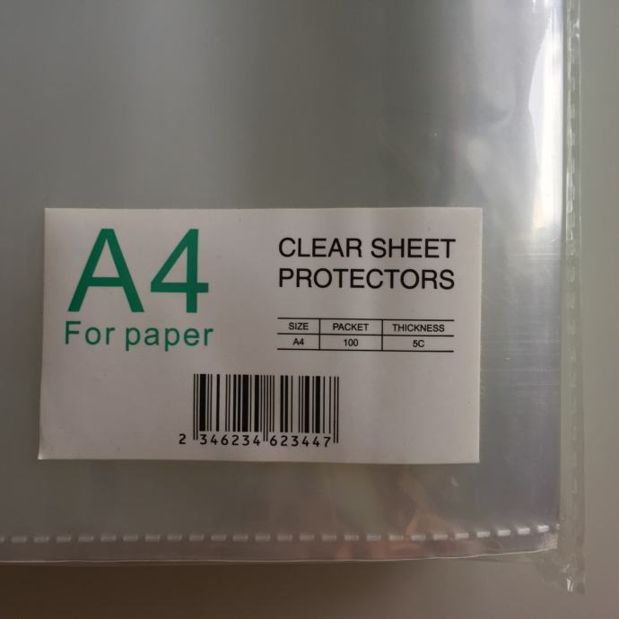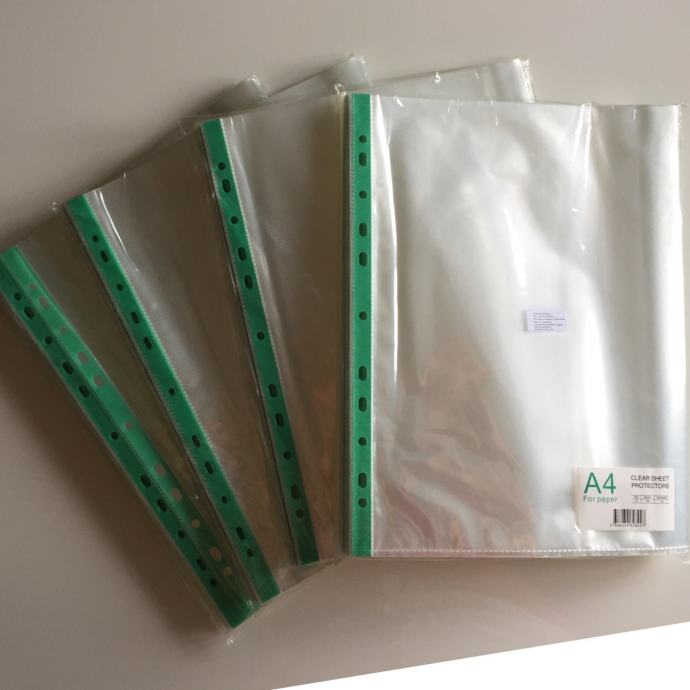 Prodajem nove prozirne košuljice s rupama za odlaganje A4 papira u registatore. Zapakirano u originalnoj ambalaži. Novo i nekorišteno. Ukupno 4 paketa s 100 komada u svakom (400 kom). Debljina košuljice 5C.