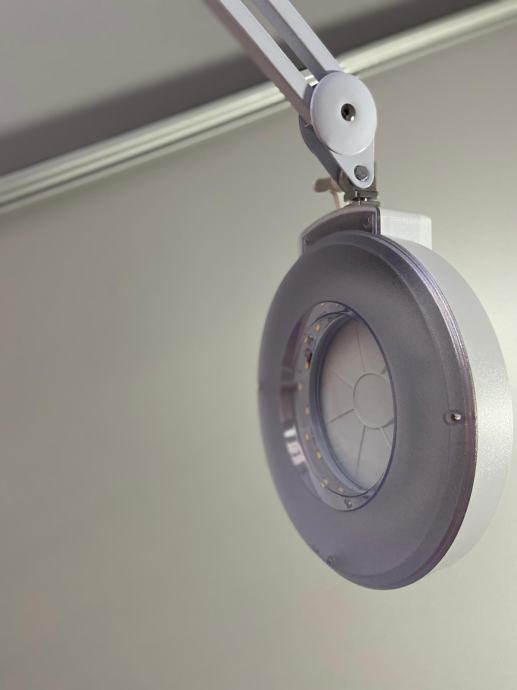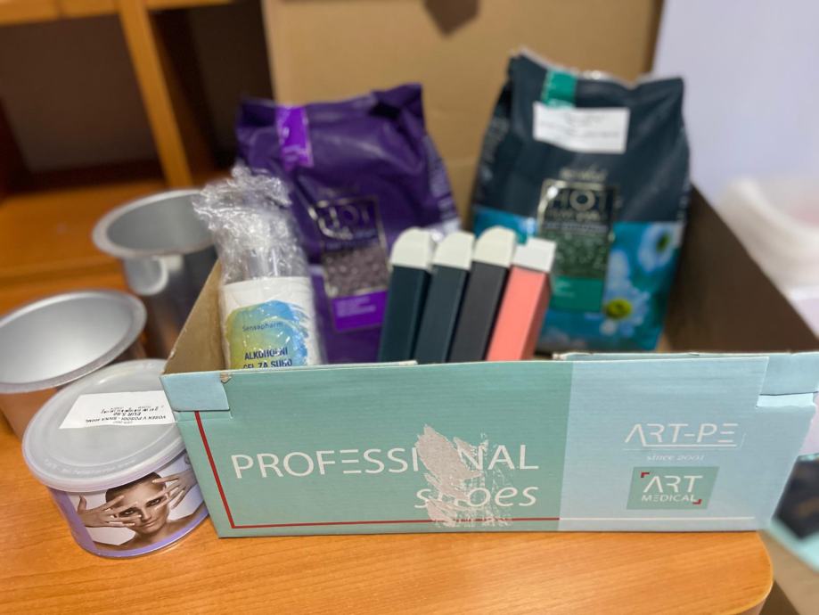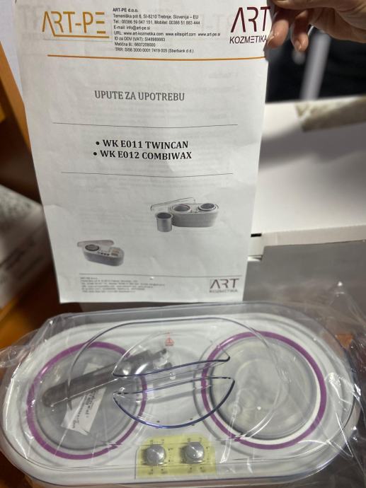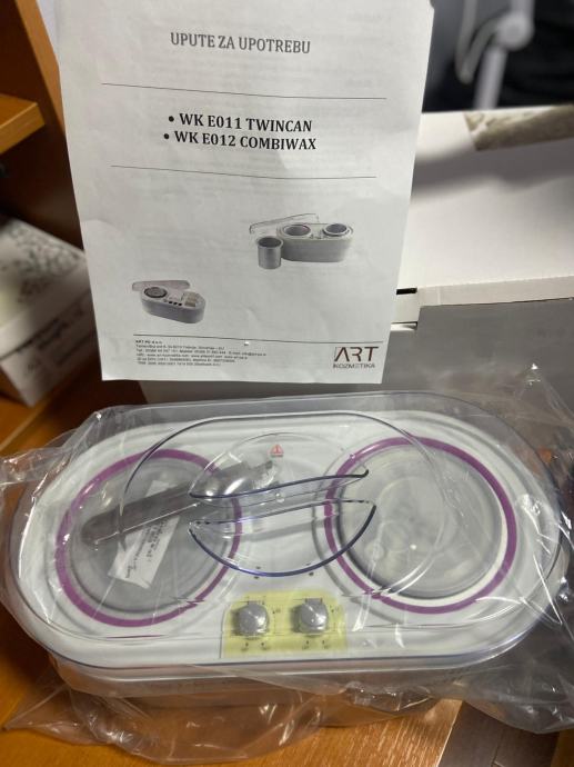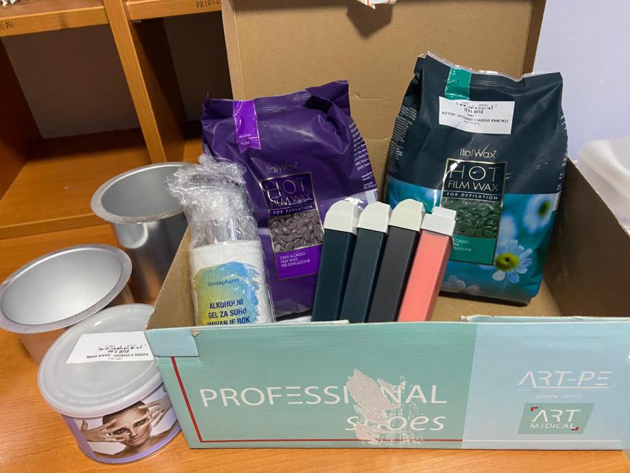 Prodaje se odlično očuvana kozmetička lupa na pokretnim kotačima, dupli grijač voska u patronama uz 5 kom novih patrona, dupli grijač voska s posudama za vosak u granulama (2 kese od 1 kg) ili vosak u važu (3 neotvorena).