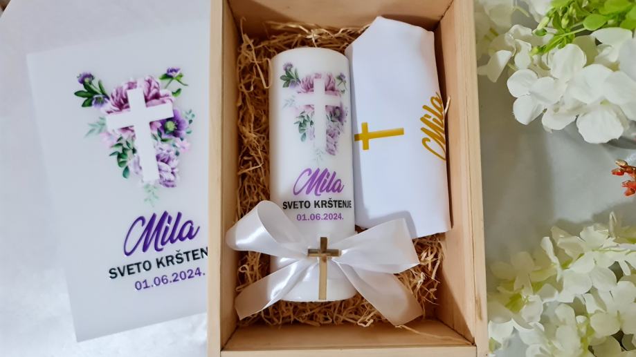 - Krsnu svijeću, ručno izrađenu, ukrašenu i personaliziranu prema želji