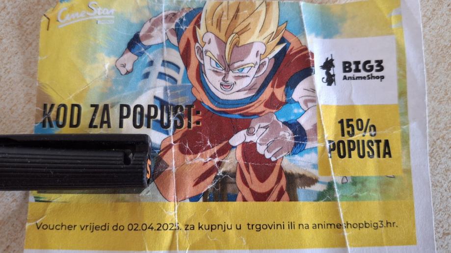 Voucher kupon za popust od 15% na cjelokupnu kupovinu svega u Anime shop Big 3 u Zagrebu - dućan ili web store (figure, mange, plišanci, torbe, katane, kolekcionarske karte, cosplay...). Na 100 potrošenih Eura ušteda 15 eur, na 500 Eura ušteda 75 Eura! Dućan ima skupljih kolekcionarskih stvari iz Japana pa je ovo odlična prilika za uštedu. Vrijedi do 16.8.2025.