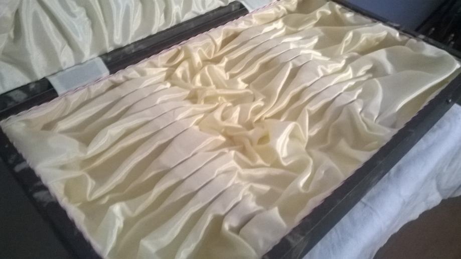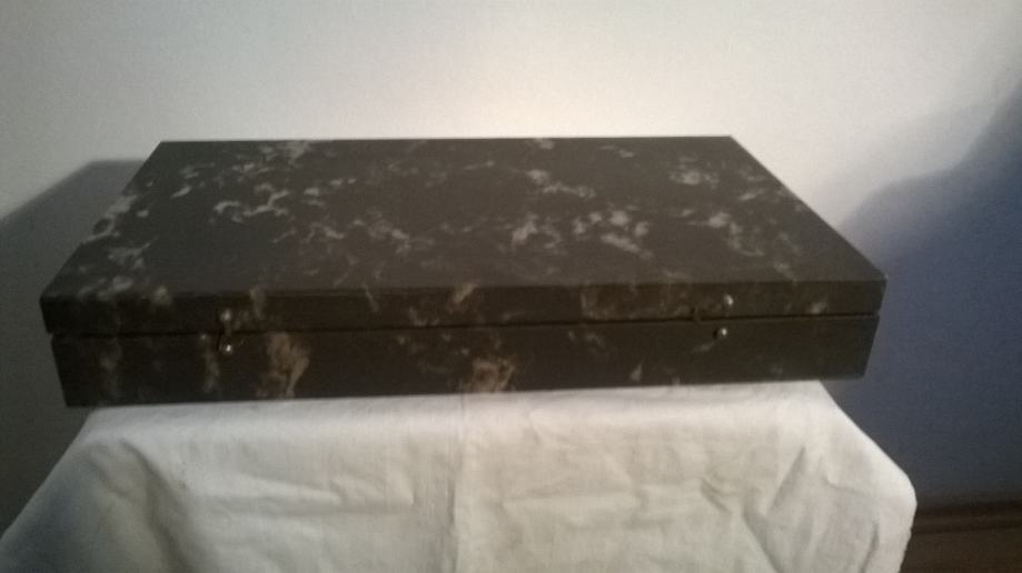 Kutije za pribor za jelo za 6 osoba, nove, nekorištene (uz manje izmjene moguće i u druge namjene) povoljno za prodavače pribora za jelo. Unutarnji dio presvučen svilom. Dizajn prema slici.