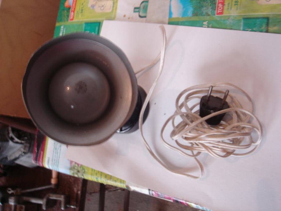 lampa na el.struju sa 4 m kablom i žaruljom, svjetli u raznim smjerovima, može se fiksirati na jedno mjesto, može služiti za noćni rad majstorima keramičarima i sl.,porijeklo Njemačka ,vidi slike ! mt(8-oben)