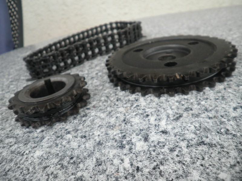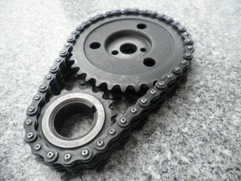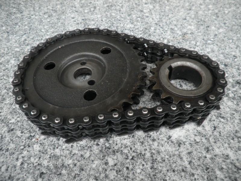 Dvostruki lanac sa lančanicima za prenos okretaja ( vrtnje ! ) , promjer većeg 108 ( 34 zuba ! ) a promjer manjeg 56 mm ( 18 zubi ! ) , ... samo 300 kn !!!