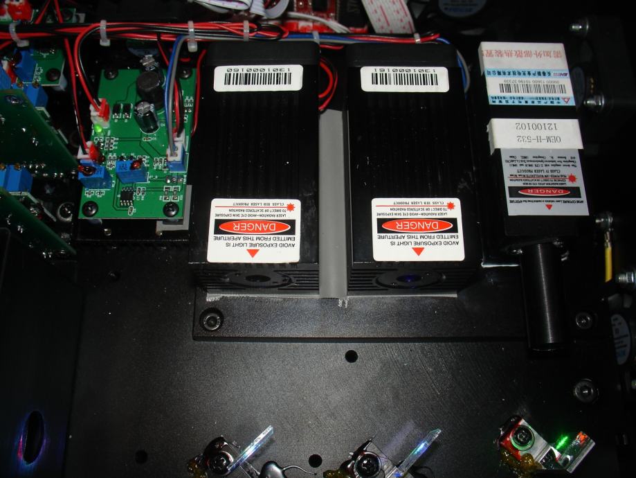 - 3 Laser modula (635nm - 2W, 445nm - 2W, 532nm - 1W)