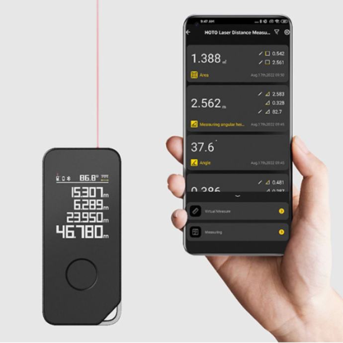 HOTO H-D50 laserski daljinomjer omogućuje brzo, jednostavno i precizno mjerenje prostora. S dometom do 50 metara i točnošću od ±2 mm, ovaj uređaj je savršen za profesionalce i kućne korisnike. Uz Bluetooth povezivost, omogućuje digitalno spremanje rezultata u aplikaciji, čime eliminira potrebu za ručnim zapisivanjem.