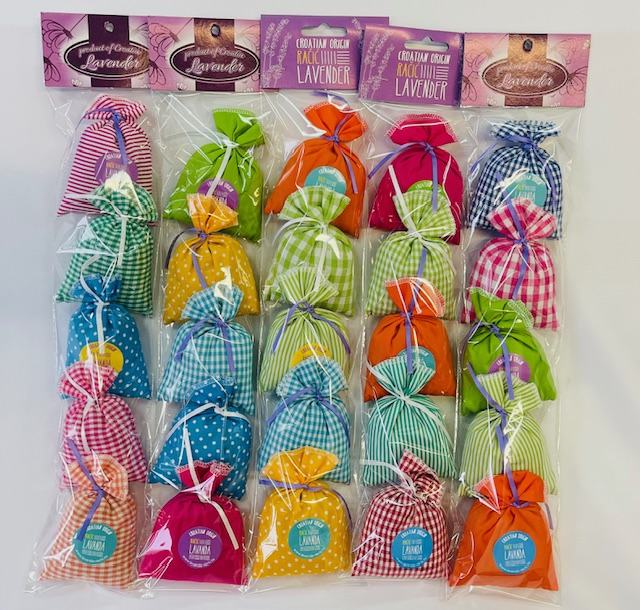 Šarene vrećice lavande, raznih dimenzija i oblika