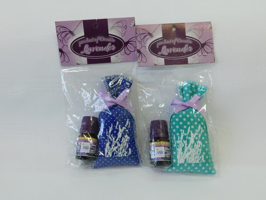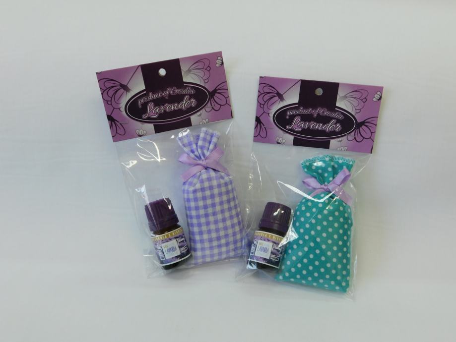 Sličica na vrećici lavanda, dok je tisak na bočice moguć po želji!