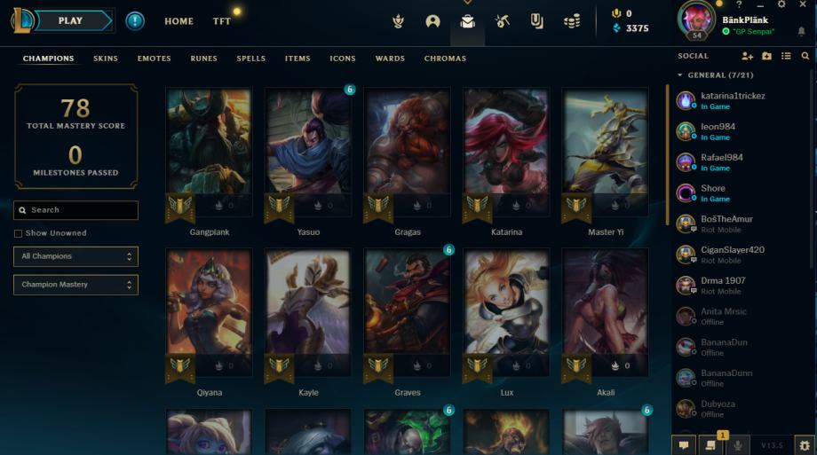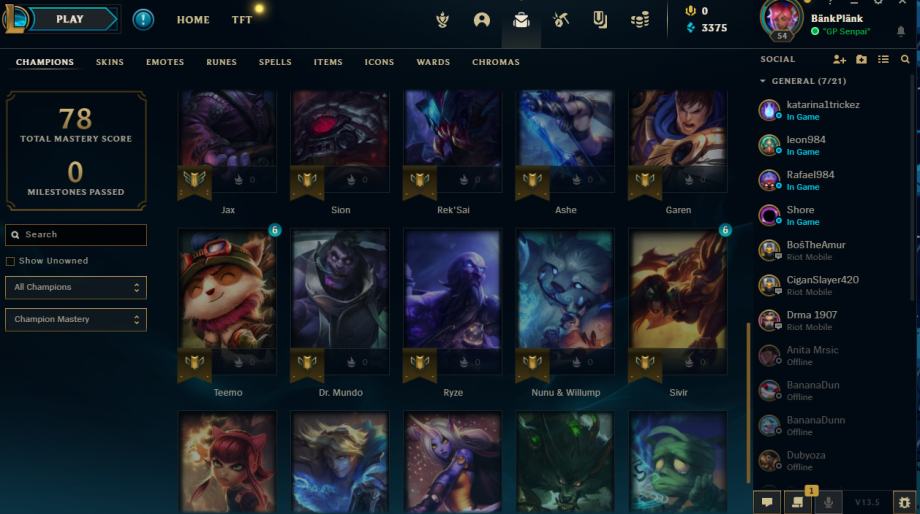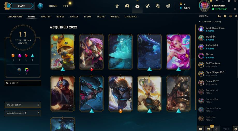 Lol smurf acc sa skinovima , 30 chamapova , 6.6k orange essensa , 3.3 k blue essensa