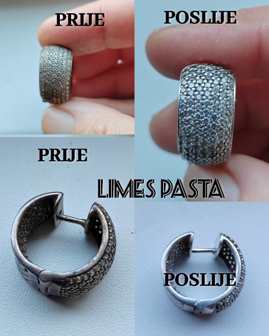 Nakit navlažiti i premazati pastom te pustiti da odstoji par minuta i oprati. Vrlo učinkovito skida crnilo kod srebra i patinu sa mesinga.