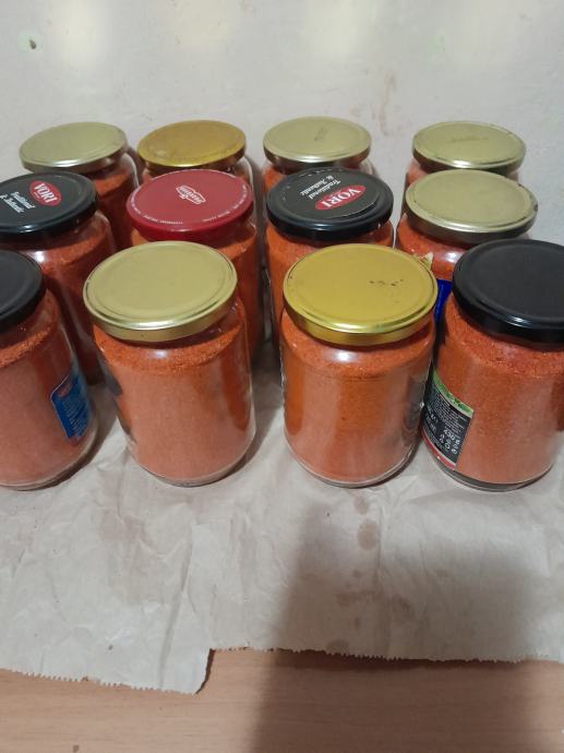 Domaća mljevena ljuta paprika, extra ljuta, ima pravu aromu paprike. Jedna staklena teglica 20€.