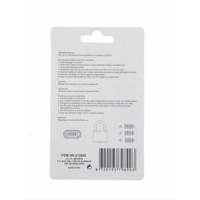 Jednostavno postavljanje i resetiranje kombinacije čini ovaj lokot iznimno praktičnim za svakodnevnu upotrebu. Početna kombinacija je standardno postavljena na 0000, no brzo je možete promijeniti u vlastiti osobni kod. Veliki gumbi na brojčanoj bravi osiguravaju jednostavno korištenje čak i u uvjetima slabog osvjetljenja.