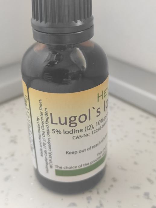Nova bočica 30 ml, neotvorena, neograničenog roka trajanja, Lugolova otopina joda 12%, (prema Denisu Berošu).