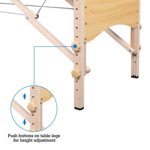 1 x 3-dijelni sklopivi prijenosni stol za masažu drveni