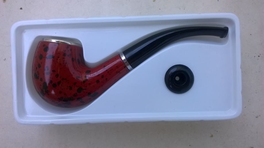 Nova,nikada korištena lula,interesantna,zanimljivog oblika,,dužine oko 14 cm,dodatan čep za poklopac,,pogledajte i druge moje oglase,,,šaljem pouzećem,tekući,tisak..