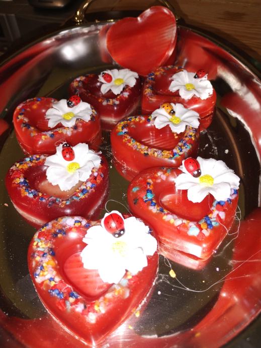 Srčeka od voska ukrašena sa kamenčićima cvjetić i buba u lijepom sjećanju kao mali pokloni za 2.00eur propada i ukrasna vrećica
