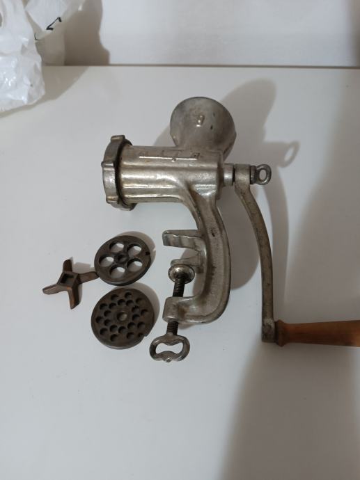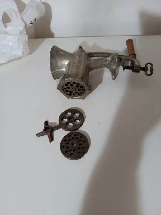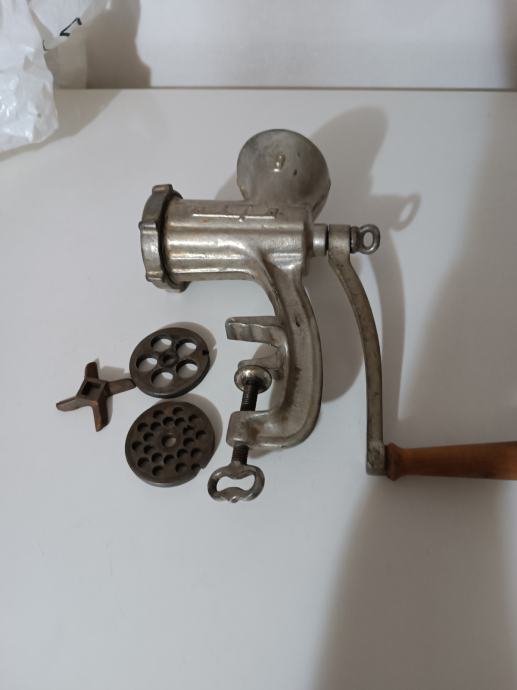 prodajem 2 mašine za ručno mljevenje mesa veličina 8. jedna ima 3 šajbe za meso i rezervni nož i cijena je 15 eura fiksno a druga je bila puknuta sa jednom šajbom i nožem. mašina je zavarena i dobro služi. cijena je 10 eura. ne šaljem poštom. zvati na 0989309776 iza 16h