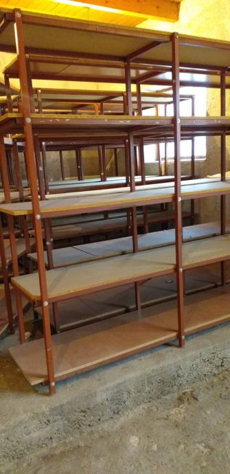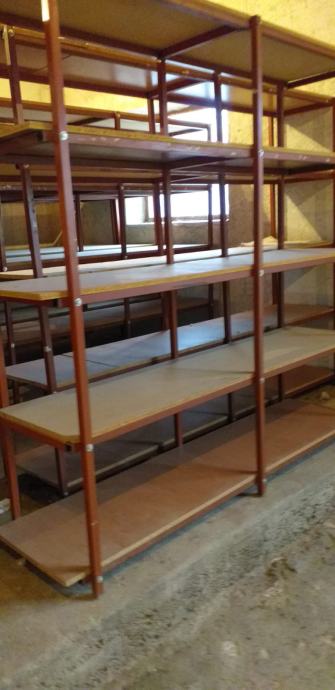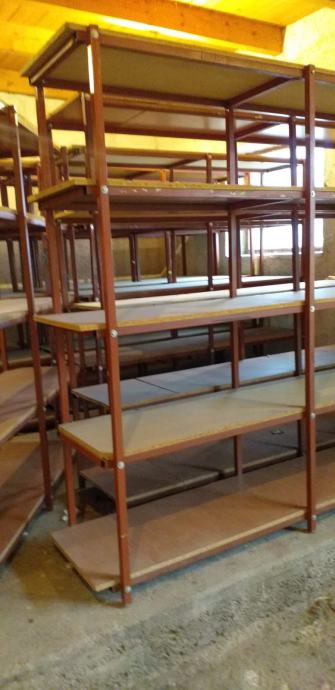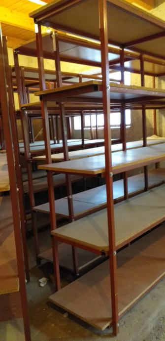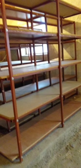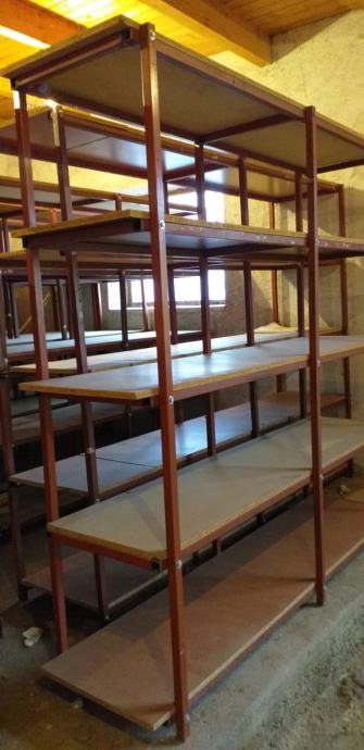 Prodajem masivne željezne police sa slike sa ivericom kao podnice. 6 polica 2,5 m dužina i 2,00 visina , 6 polica 2,0 dužina i 2,00 visina ukupno 27m dužnih. Cijena po komadu 1000 kn, za sve u paketu cijena 10000 kuna,hitno jer smetaju .Komplet sa šarafima i podnicama kao na slici. Nalaze se u Gospiću, informacije na broj 0994144093.