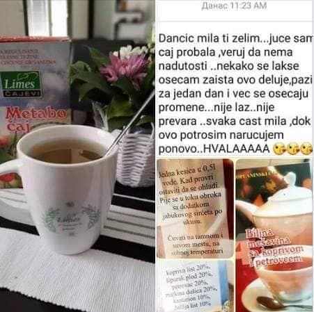 Jedna vrečica u 5 dl vode (2 vrećice u 1l vode, za cijeli dan). Kad provri ostaviti da se ohladi. Pije se u toku obroka sa dodatkom jabučnog octa ( 1-2 žlice).
