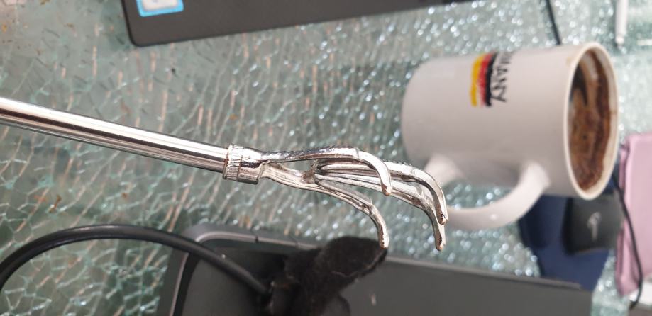 Ona je u kombinaciji ne klizajuće plastike i metalne teleskopske drške dužine od 58 cm. U skupljenom stanju joj je dužina od 21,5 cm.