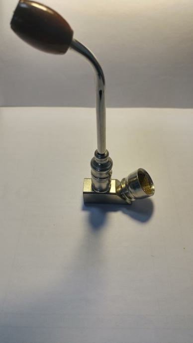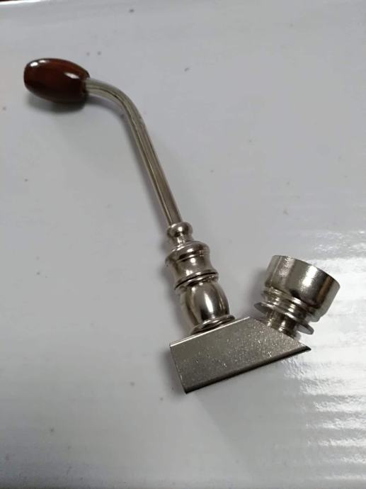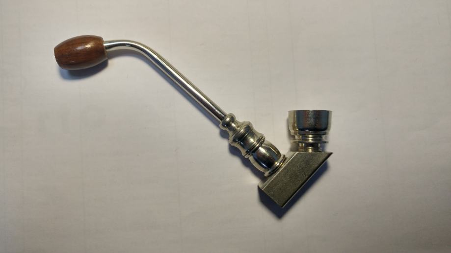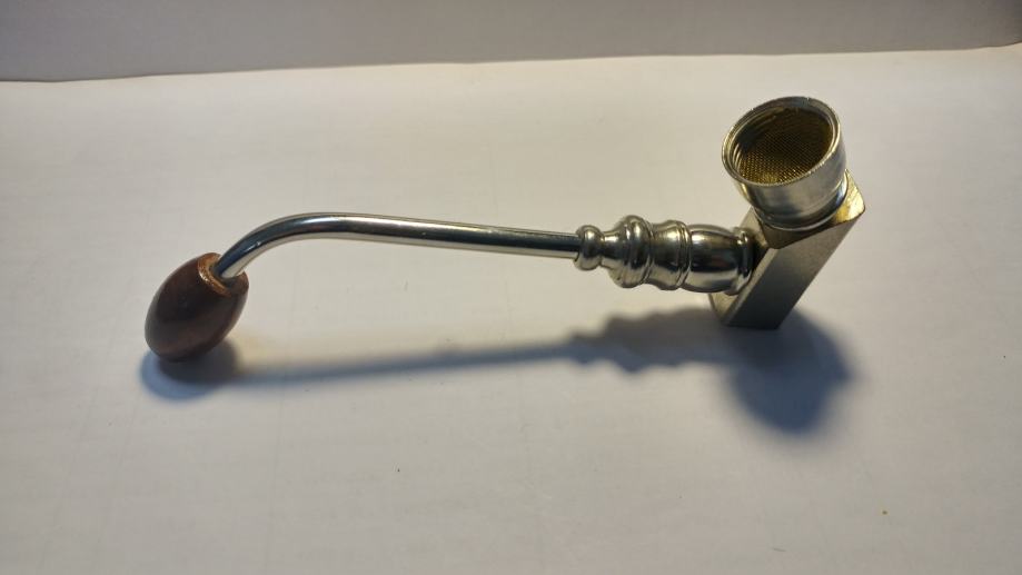 Samostojeća metalna lula s drvenim krajem koji ide u usta.