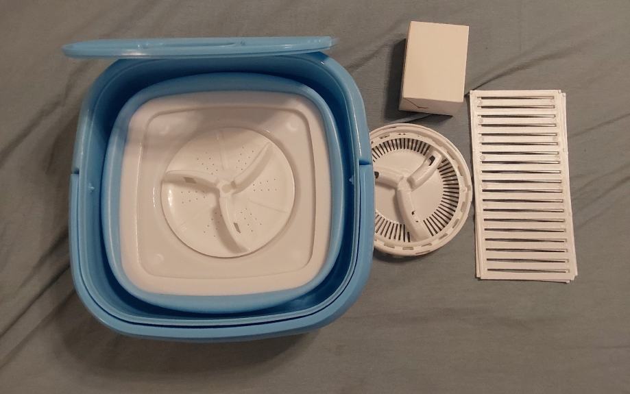 Vešmašina je sklopiva,PA je pogodna za studente, kampiranje opčenito za sve.Pere do 1,60 kg.veša majice,gaće,grudnjake,čarage itd.