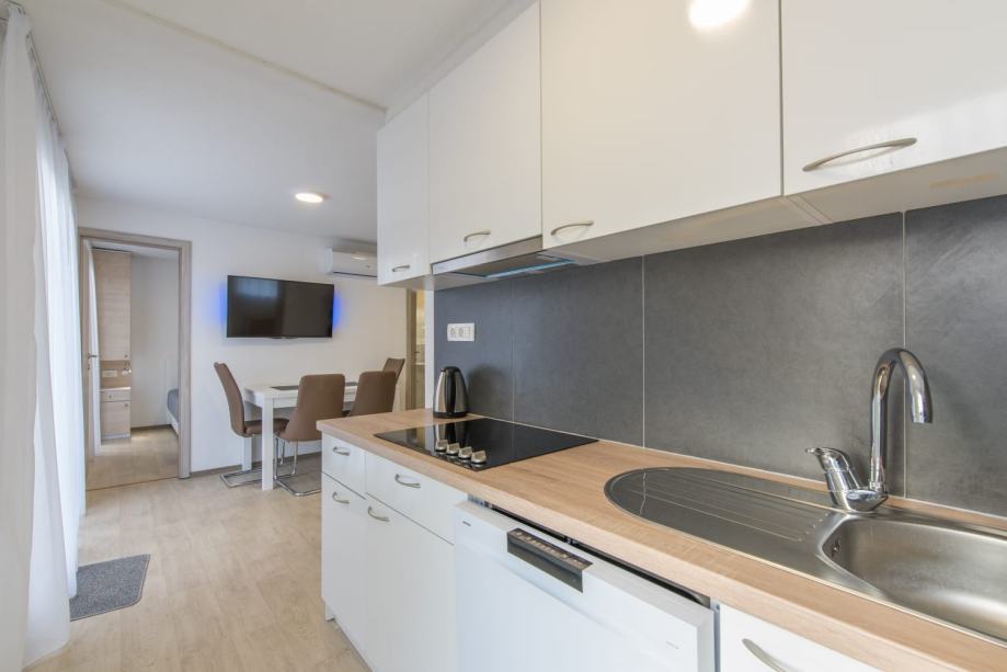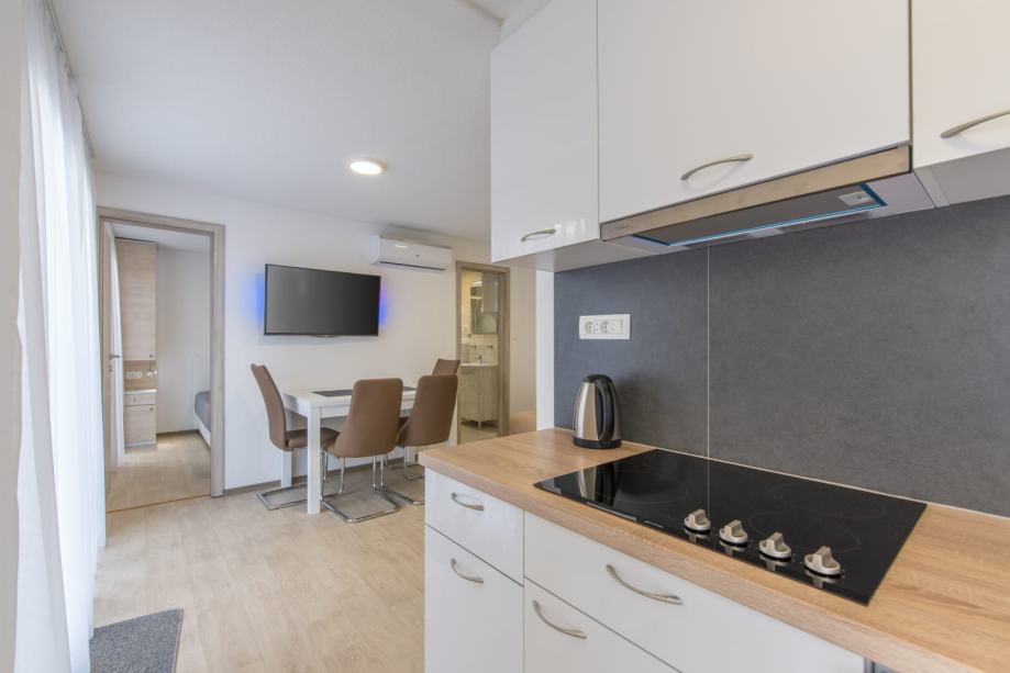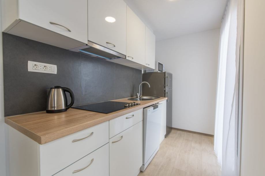 - Odsisna kuhinjska napa sa odsisavanjem na vanjski zid preko samozatvarajuće žaluzine kad napa ne radi.