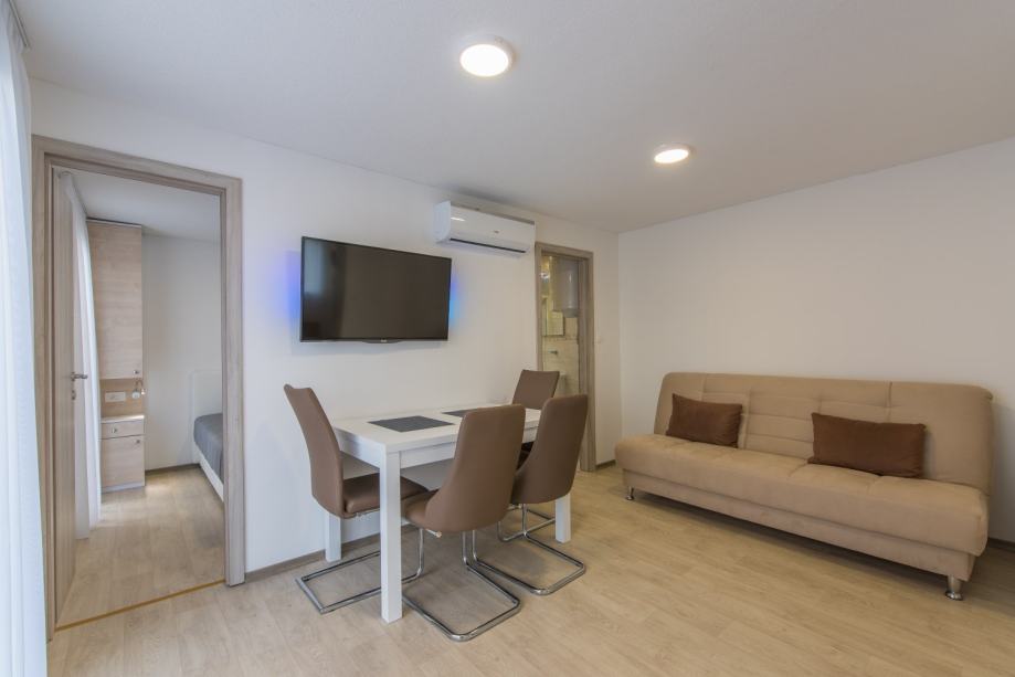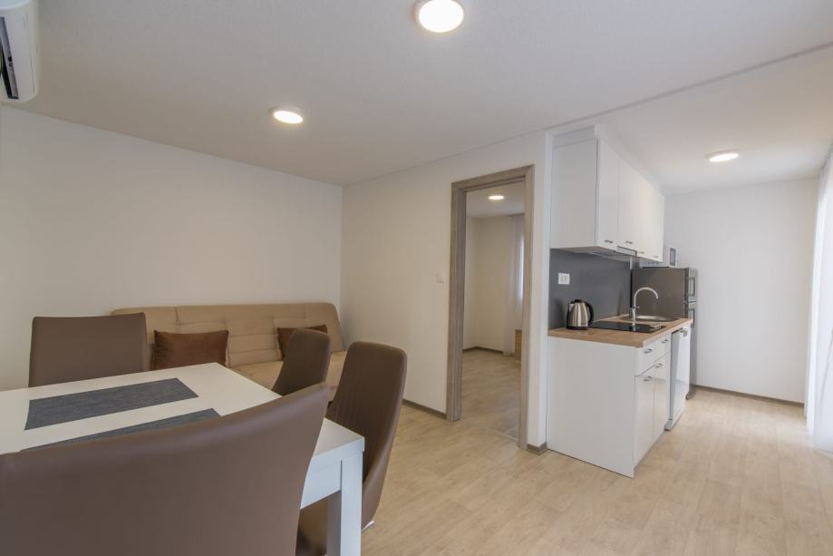 Dvije spavaće sobe, dnevni boravak, kuhinja i kupaonica.