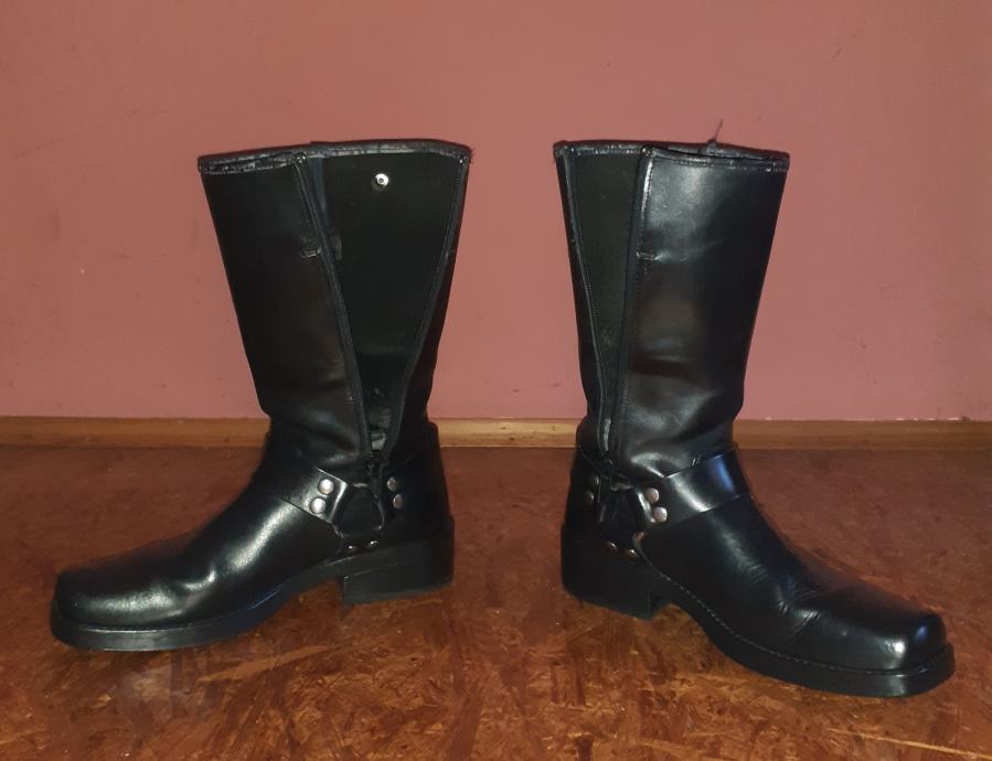 Prodajem motorističke čizme br. 44 . Prava koža ( goveđi box ) Čizme su u odličnom stanju, malo prerađene...ugrađen ziper ( radi lakšeg obuvanja i izuvanja) i stezač na gornjoj strani sare. Prodaja, isključivo, putem pouzeća ili osobno preuzimanje na označenoj adresi