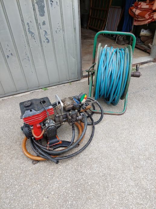 Ispravna motorna prskalica - šprica, sa 100 metara crijeva na koloturu