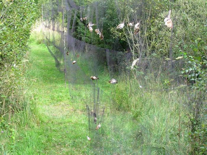 Mreže su crne boje od najlona koji je dosta tanak pa ga ptice uopće nevide te se lako zapetljaju. Najlon je tanak i jak pa ga nije tako lako potrgati, svrha mu je lov grdelina i ostalih vrsta ptica za prstenovanje. Nebitno koliko koštaju, končane se nemogu uspoređivati sa najlonskim mrežama. Netko tko je koristio obe zna da končanu mrežu ptica vidi ako se hvata na otvorenom području jer nije kao najlonska koja je nevidljiva, končana ima šanse jedino ako se postavlja između nečega kao što je neki put između zaraslih površina.