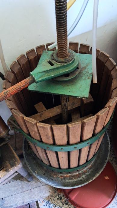 PREŠA MIO Osijek za grožđe ili drugo voče. Postolje od lijevanog željeza (gusa)