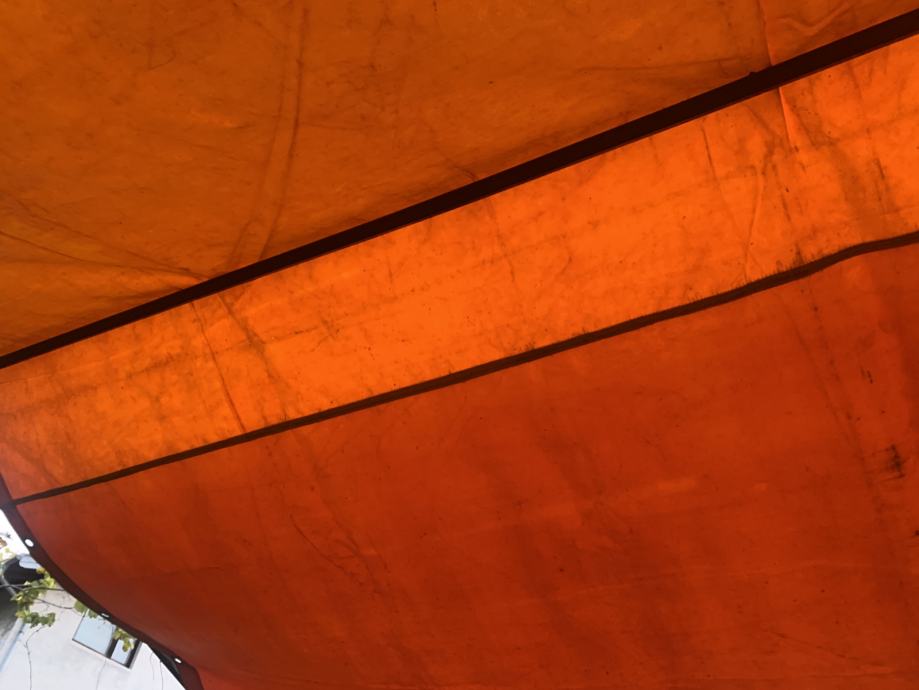 starija čelična konstrukcija za moguće stalno postavljanje sa prekrivalom plaštom ceradom