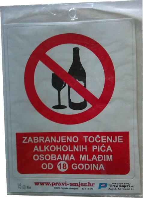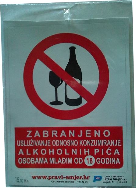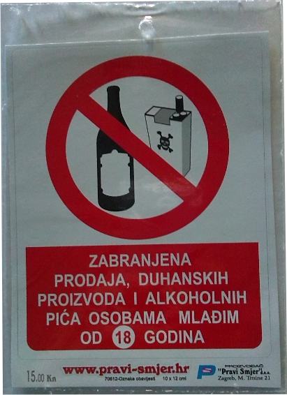 Naljepnica Zabrana prodaje i konzumacije alkoholnih pića i cigareta