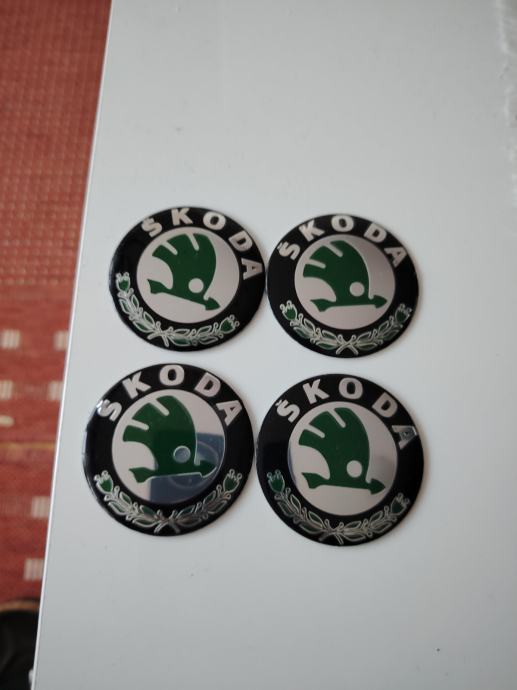 Prodajem set (4 komada) naljepnice za felge ili ratkape Volkswagen i Škoda, 56 mm promjer, tvrde su, nisu baš slabe / neće se potrgati "samo tako".