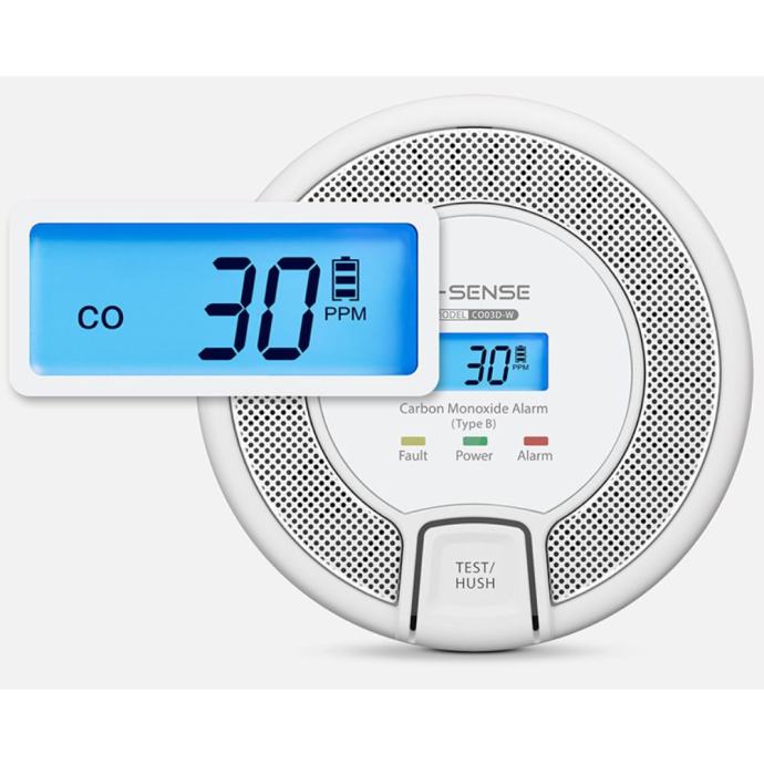 Detektor dolazi s LCD zaslonom koji u stvarnom vremenu prikazuje razinu ugljičnog monoksida u prostoriji. Trobojni LED indikatori (zeleni, žuti i crveni) dodatno signaliziraju status uređaja – od ispravnog rada do upozorenja na opasnost ili slabu bateriju. Glasni alarm od ≥85 dB dovoljno je snažan da ga čujete i u bučnom okruženju.