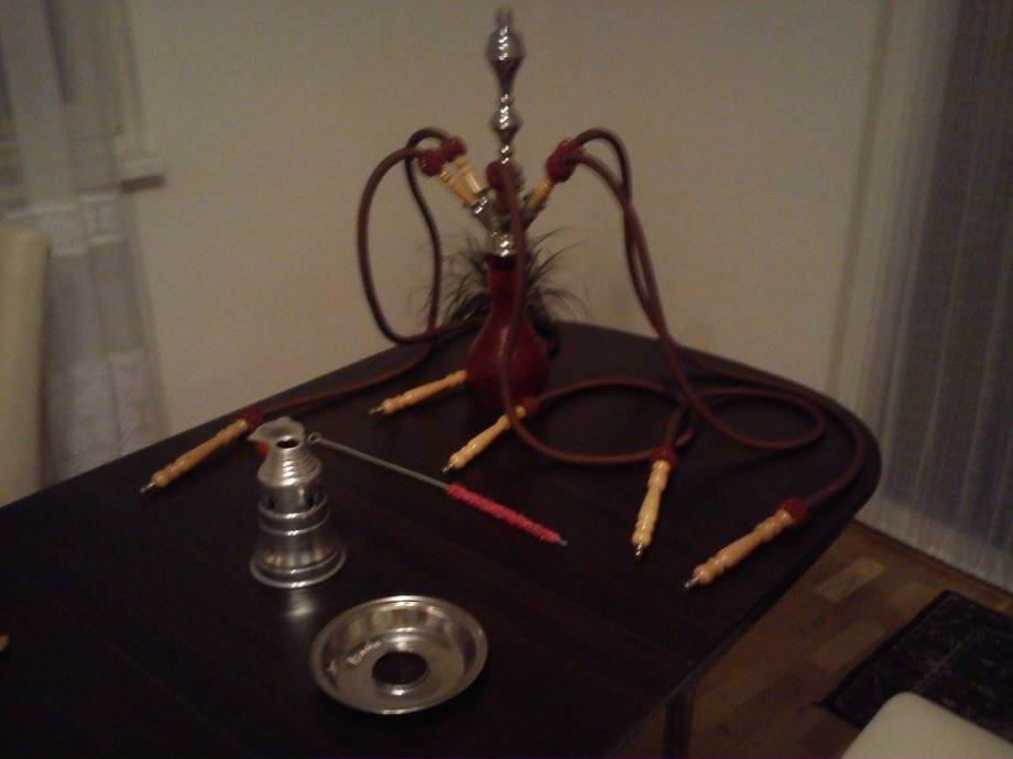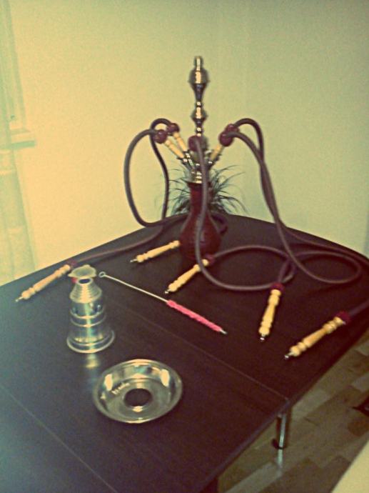 - Posuda za duhan, 6 crijeva,mrežica za žar,četka za čiščenje,pepeljara,zaštita od vjetra.