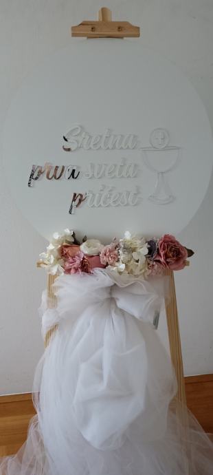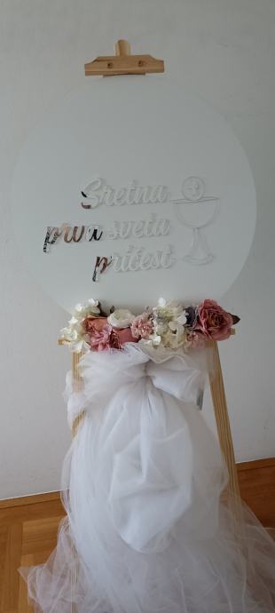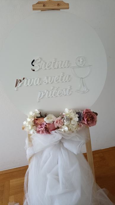 Dekorativni krug promjera 60 cm sa srebrnim 3D slovima od pleksiglasa