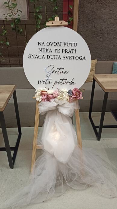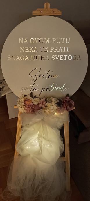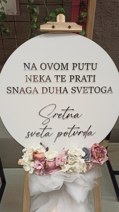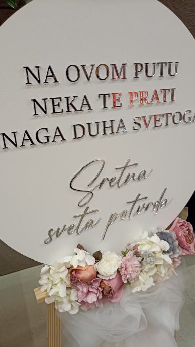 Dekorativni krug promjera 60 cm sa srebrnim 3D slovima od pleksiglasa