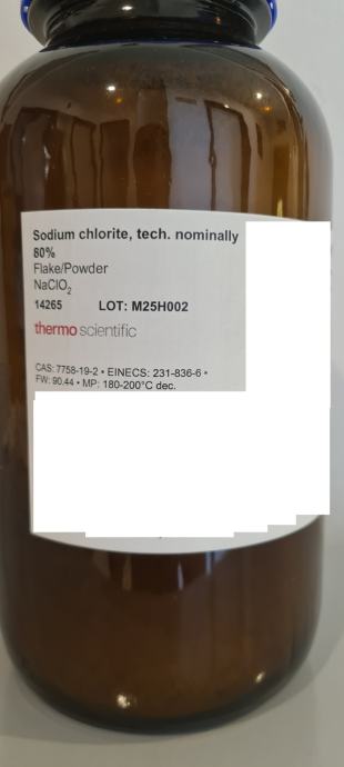 Natrijev klorit (NaClO2, 80%, p.a. laboratorijske čistoće) je dezinfekcijsko sredstvo za mnoge primjene.