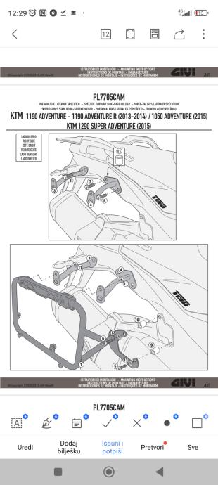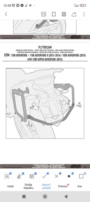 Givi nosači za bočne kofere KTM 1190,1050 2015.g(superadventure) vijke za montažu na ramu nemam