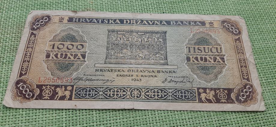 Novčanica 1000kuna hdb izdanje 1.rujna 1943 serijski broj 2556593.prodajem,šaljem poštom kontakt 098 828 880.