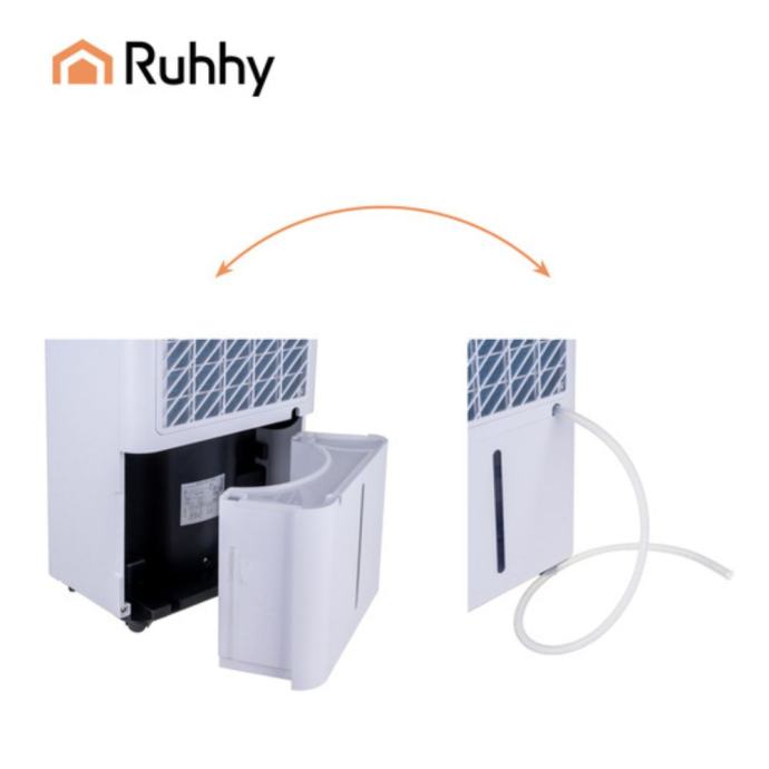 Zahvaljujući ručki i kotačićima, odvlaživač se lako prenosi između prostorija. Dodirna ploča i LCD zaslon omogućuju jednostavno upravljanje, dok timer 1–24 h pruža potpunu kontrolu nad radnim vremenom.