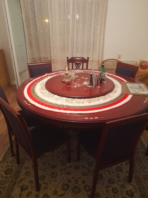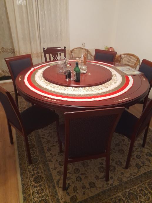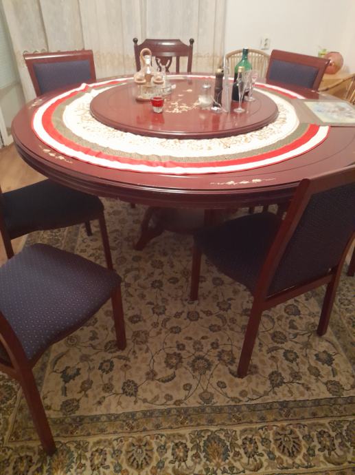 Stol puno drvo i jake čvrste noge na sredini. Manja tabla 100cm se okreće rotira.. 1200eura