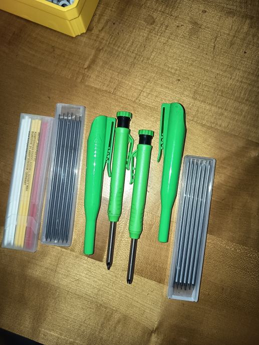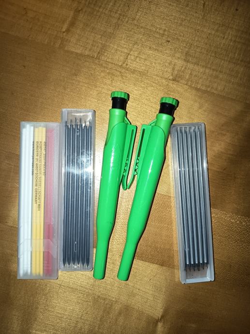 Prodajem nove građevinske olovke za zacrtavnje. Radi se o praktičnim mehaničkim olovkama namijenjenim za obilježavanje na gradilištu, uz koje dolaze zamjenski ulošci. Stanje je novo.